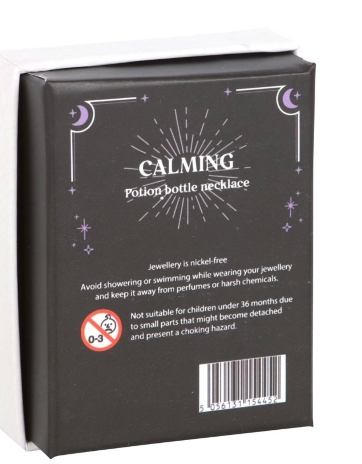 Connect with magic and inner strength with our Calming Amethyst Potion Bottle Necklace. Made with real amethyst crystal chips and a cork stopper, this necklace serves as a spellbinding accessory while soothing nerves. Gift this necklace in its matching box to the special witch in your life. Plastic bottle on a nickel-free steel chain.
